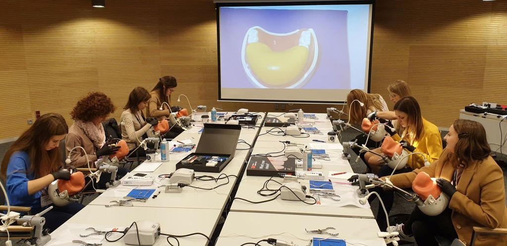 Podczas bloku praktycznego kursanci mieli okazję opracować kanały w specjalnie przygotowanych do tego zębach fantomowych oraz plastikowych bloczkach a także testować dość świeży na rynku system pilników maszynowych.